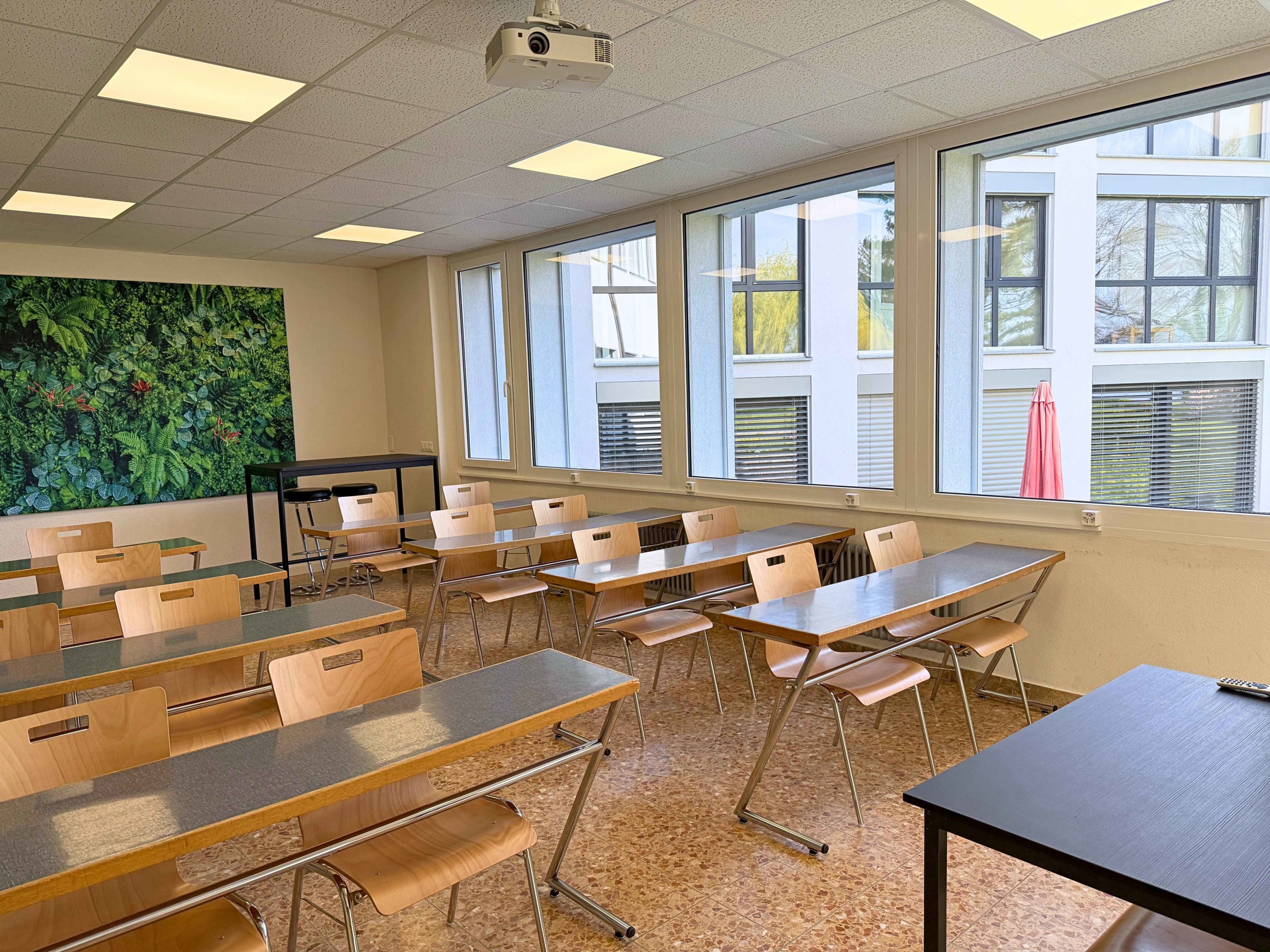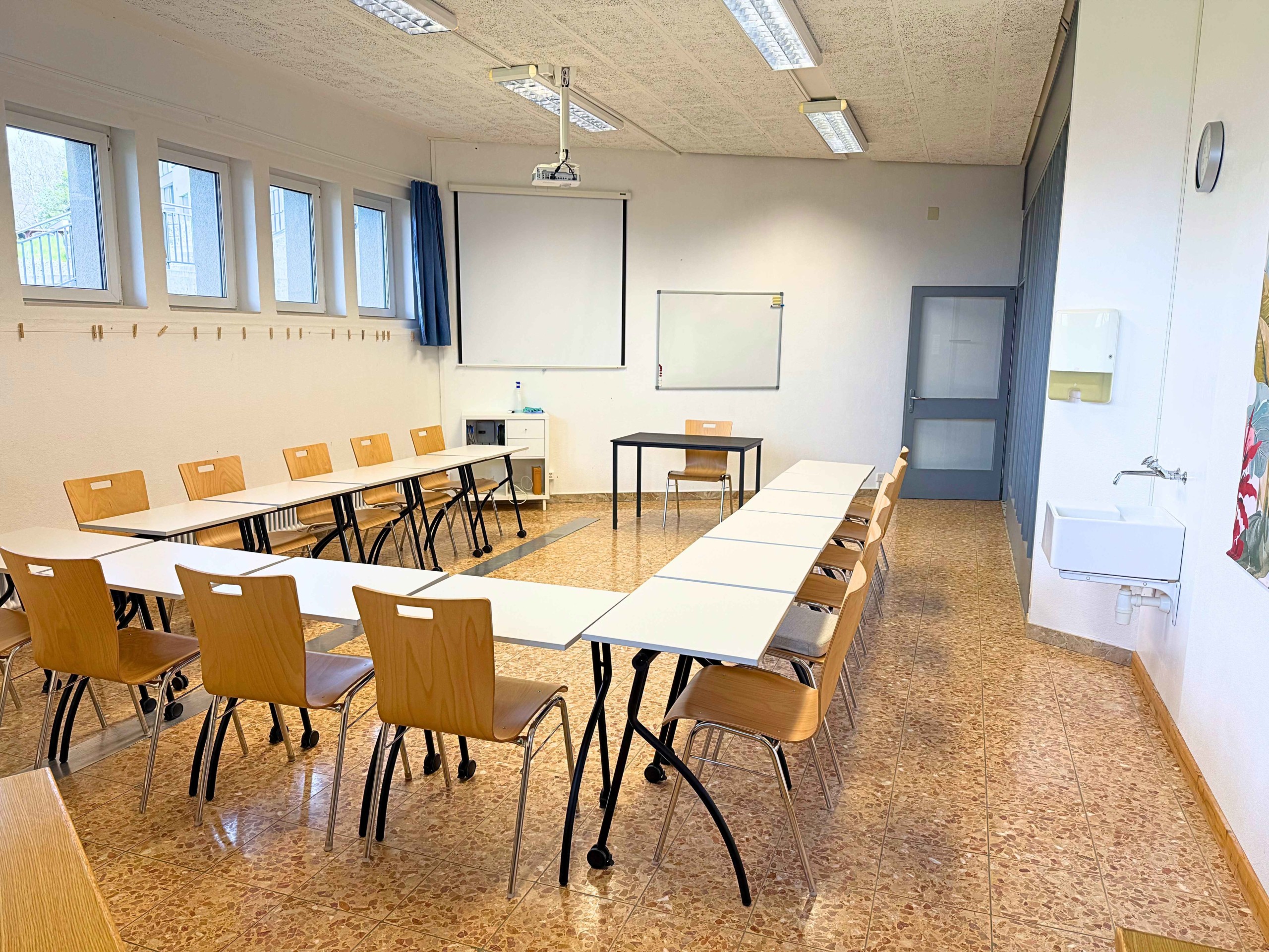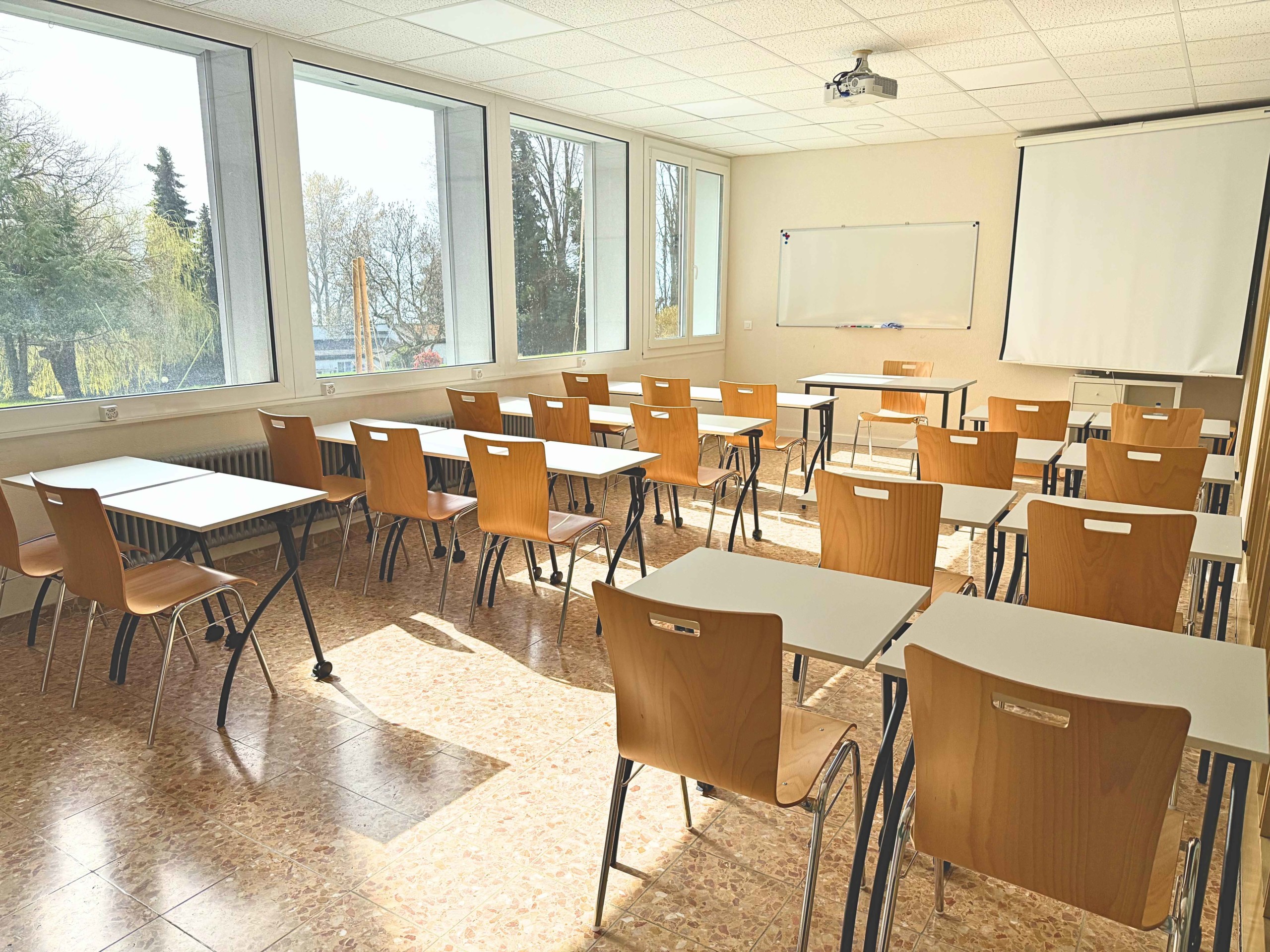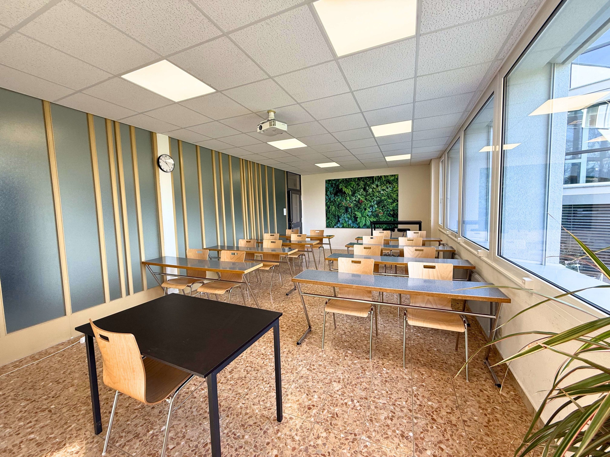 Salle de cours ou de réunion d’une capacité de 12 à 15 personnes.